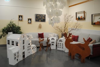 Gearbeitet wurde mit nachhaltigen Materialien die neu und kreativ wiederverwendet wurden. Egal ob aus Holz oder gesponserten Werkstoffen der Papierfabrik Sappi, der Vielfalt in der Gestaltung wurden keine Grenzen gesetzt. So gibt es beispielsweise Elche, verschneite Berge, Sterne, Kartonhäuser mit sanften Lichteffekten, Holzfiguren, ein Weihnachtsmemory und vieles mehr zu bestaunen.
