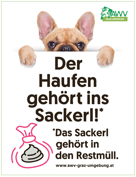 Wussten Sie, dass Haustierkot nicht in den Biomüll gehört? Der Biomüll aus Graz-Umgebung wird von landwirtschaftlichen Kompostierbetrieben zu hochwertiger Erde verarbeitet. Die möglicherweise im Kot enthaltenen Krankheitserreger, Parasiten oder Medikamentenrückstände beeinträchtigen die gute Qualität des Kompostes.