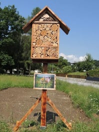 spezielle Flächen mit Blumen angesät, ein Totholzbereich für Wildbienen eingerichtet, ein Insektenhotel sowie Informationstafeln aufgestellt.